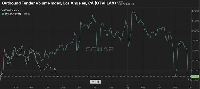 FreightWaves首席执行官Craig Fuller也提到,洛杉矶港卡车运输活动急剧下降。