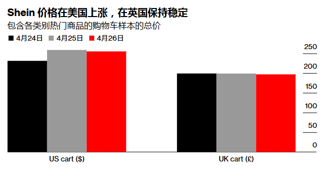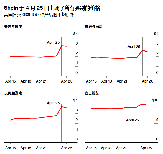 根据媒体抽样数据显示,在4月24日至26日期间,Shein在美国的整体价格平均上涨了约10%。关税的实施对美国消费者产生了显著影响。