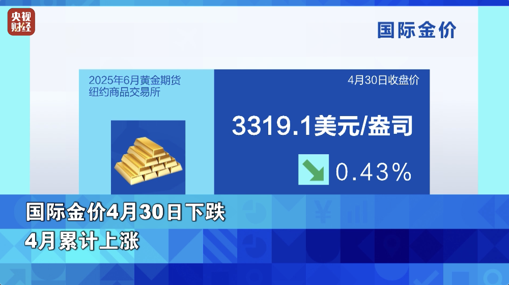 国际金价4月30日下跌,但4月累计上涨