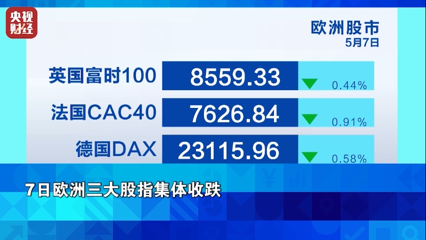 欧洲市场方面,投资者在关注主要上市公司财报的同时,仍担忧特朗普政府可能对进口医药制品加征关税,这将打击欧洲医药行业。丹麦制药巨头诺和诺德2025财年第一季度净利润超预期,但下调了全年业绩指引,其股价仍收涨1.3%。其他行业方面,零售股领跌欧洲多国股市,导致欧洲三大股指周三均收跌。截至收盘,英国股市下跌0.44%,法国股市下跌0.91%,德国股市下跌0.58%。