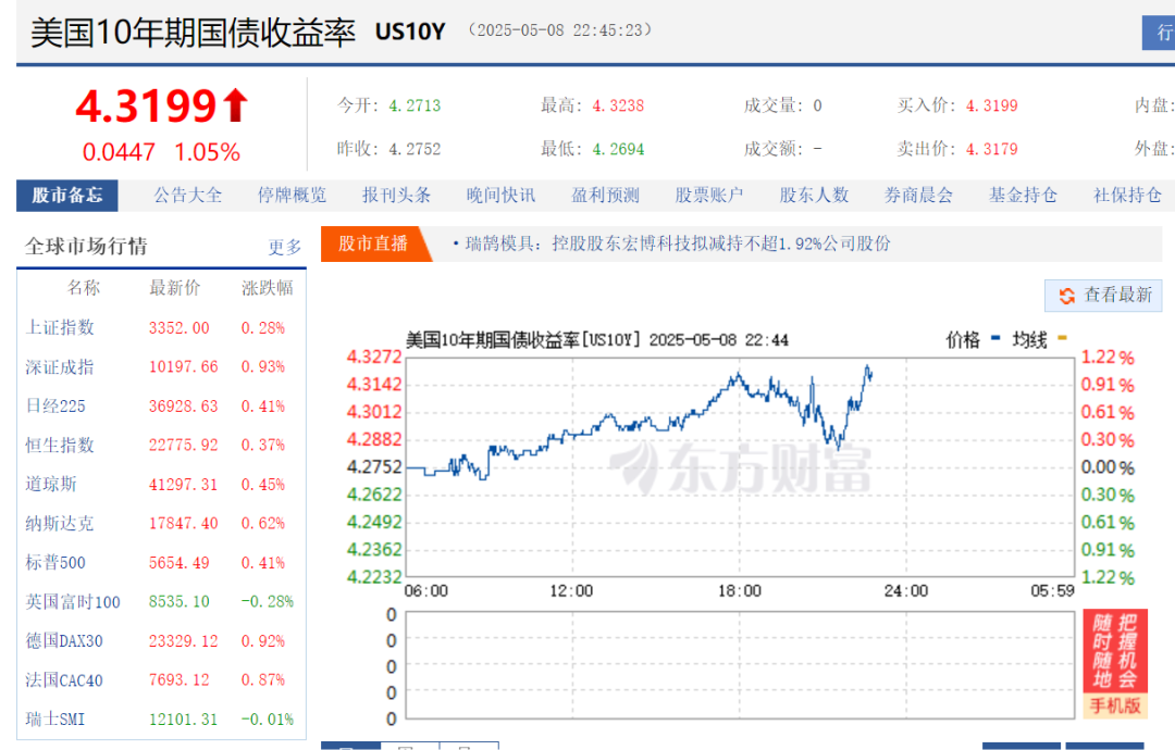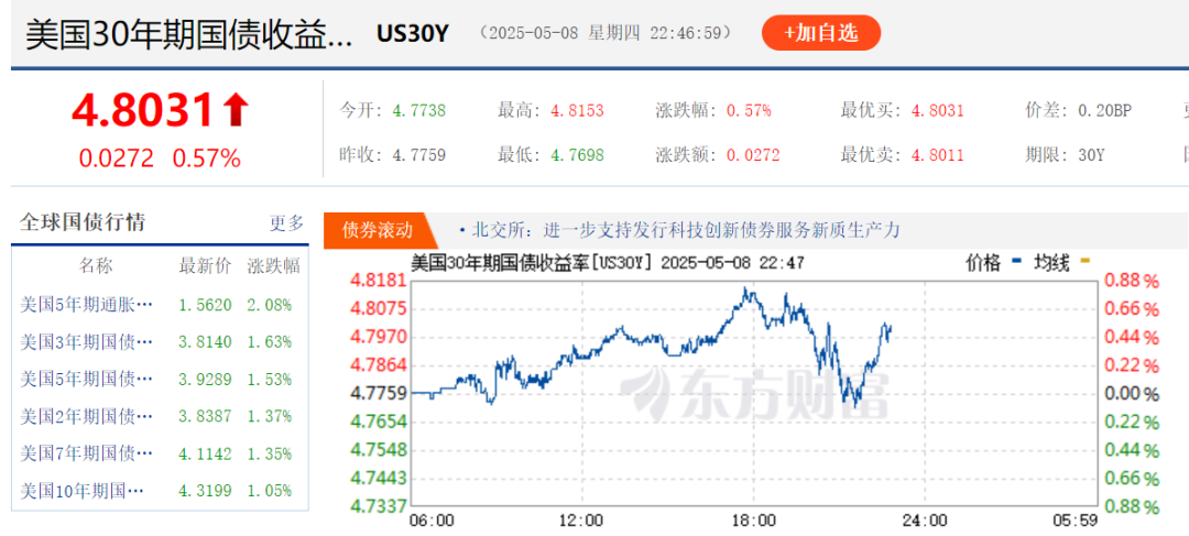 5月8日,美股三大指数齐涨,美元指数回升,而特朗普关注的美债则再遭抛售。同时,英国与美国就关税贸易协议达成一致,欧盟则计划对美国进口产品采取反制措施。