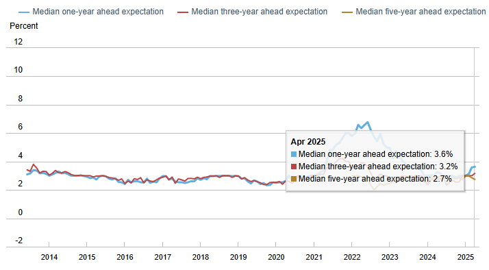 纽约联储发布2025年4月消费者预期调查报告,显示美国消费者对中期通胀的预期攀升至近三年来的最高水平,而对就业市场的看法恶化。美联储正密切关注公众对未来物价压力的预期。