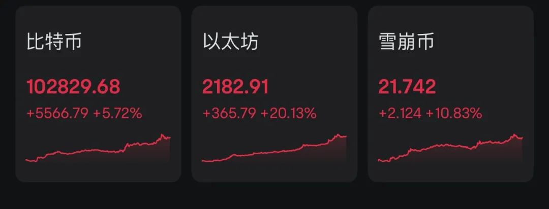 比特币暴涨,再次站上10万美元关口,日内一度大涨超8000美元。最新报102829.68美元,日内涨幅超过5%。关税缓和、美国通胀持续、英国央行降息等消息刺激比特币大涨。另外,特朗普前加密顾问成立“中本聪”公司,募资3亿美元布局比特币投资也给市场带来大利好。