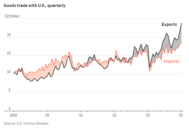 英美贸易协议签订,英国成为首个与美国签订贸易协定的国家。协议细节曝光,特朗普政府内部急切情绪显现,商品贸易顺差与关税问题备受关注,但服务业贸易鲜有提及。