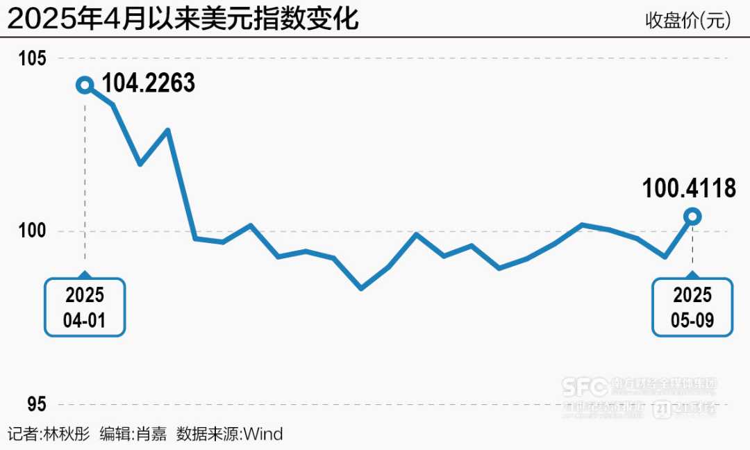 汇市方面,美元指数4月开盘于104.179,收盘于99.646,跌幅高达4.36%,其间最低点更是触达97.910。此前,美元指数长期维持在105以上的高位,并于今年1月10日以109.6567创下2023年以来的新高。最新数据显示,美元指数目前徘徊在100.41附近。