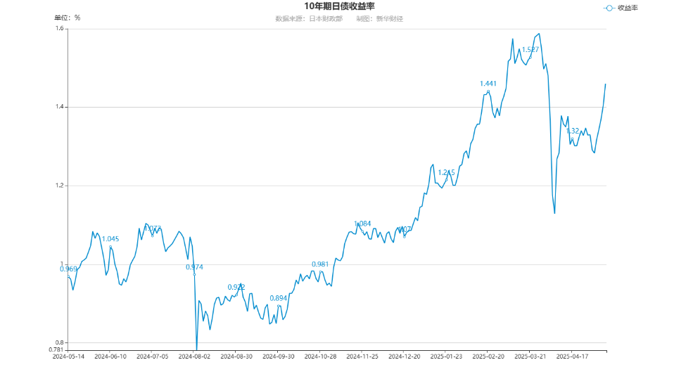 亚太市场方面,日债走势出现分化。2年期日债收益率跌0.5BP至0.709%,10年期日债收益率涨1.9BP至1.466%,30年期日债收益率则大幅上涨6.8BPs至2.943%。