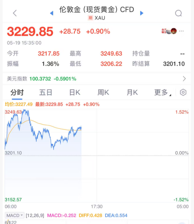 穆迪评级公司剥夺美国政府最高信用评级,导致美国股债双杀,避险情绪升温推动黄金上涨。同时,A股市场全天探底回升,三大指数表现分化,个股普涨。