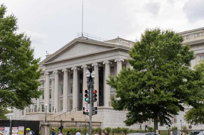 这是2024年7月29日在美国首都华盛顿拍摄的美国财政部大楼。新华社记者胡友松摄