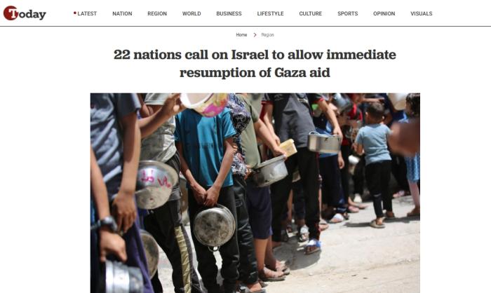 报道称,22国外交部长与欧盟外交与安全政策高级代表卡娅·卡拉斯在一份联合声明中承认,虽然“援助有所恢复”,但以色列“已阻止人道主义援助进入加沙超过两个月”,加剧了当地的困境。