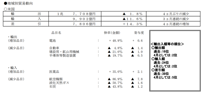 日本财务省公布的4月贸易统计初值显示,对美国出口较上年同期下滑1.8%,汽车及制造装置出口同比走低,引发外界对全球经济复苏步伐的担忧。日本需寻找新市场增长点,应对全球贸易环境的不确定性。