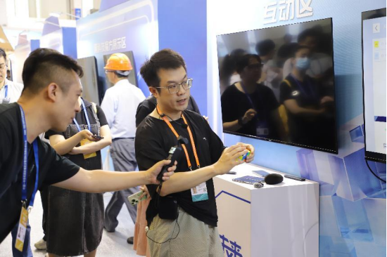 出口消费品展区参展企业涵盖人工智能、低空经济等领域。展位总数超2000个,参展企业1028家。广州智竞未来互联科技有限公司带来“乐培智能魔方”,提升孩子思维能力。