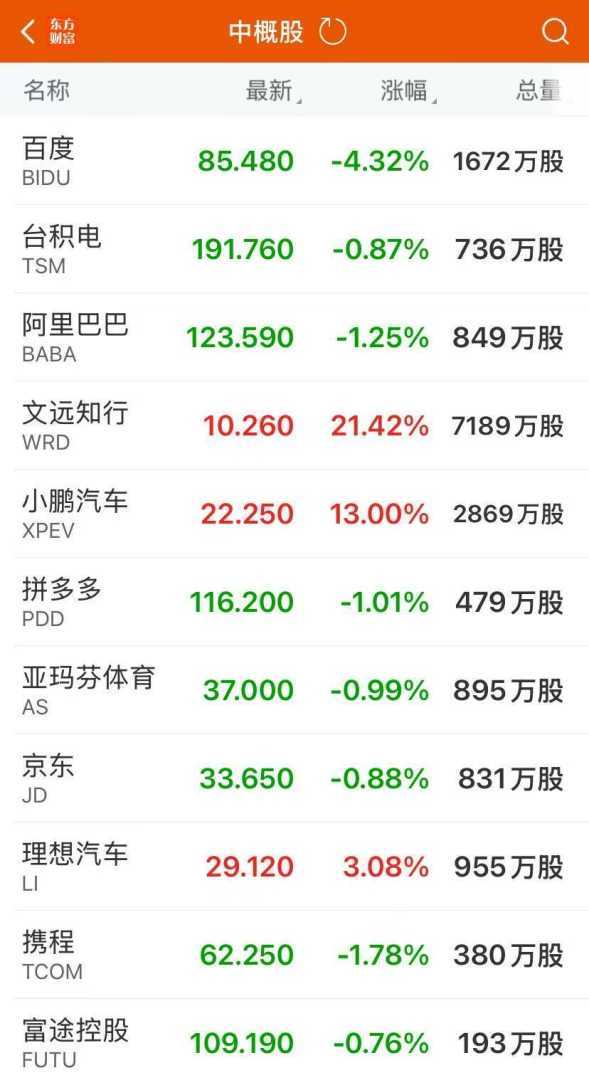 其中,特斯拉收跌2.68%,苹果跌2.31%,热门中概股百度初步收跌4.2%。纳斯达克金龙中国指数收跌0.72%。