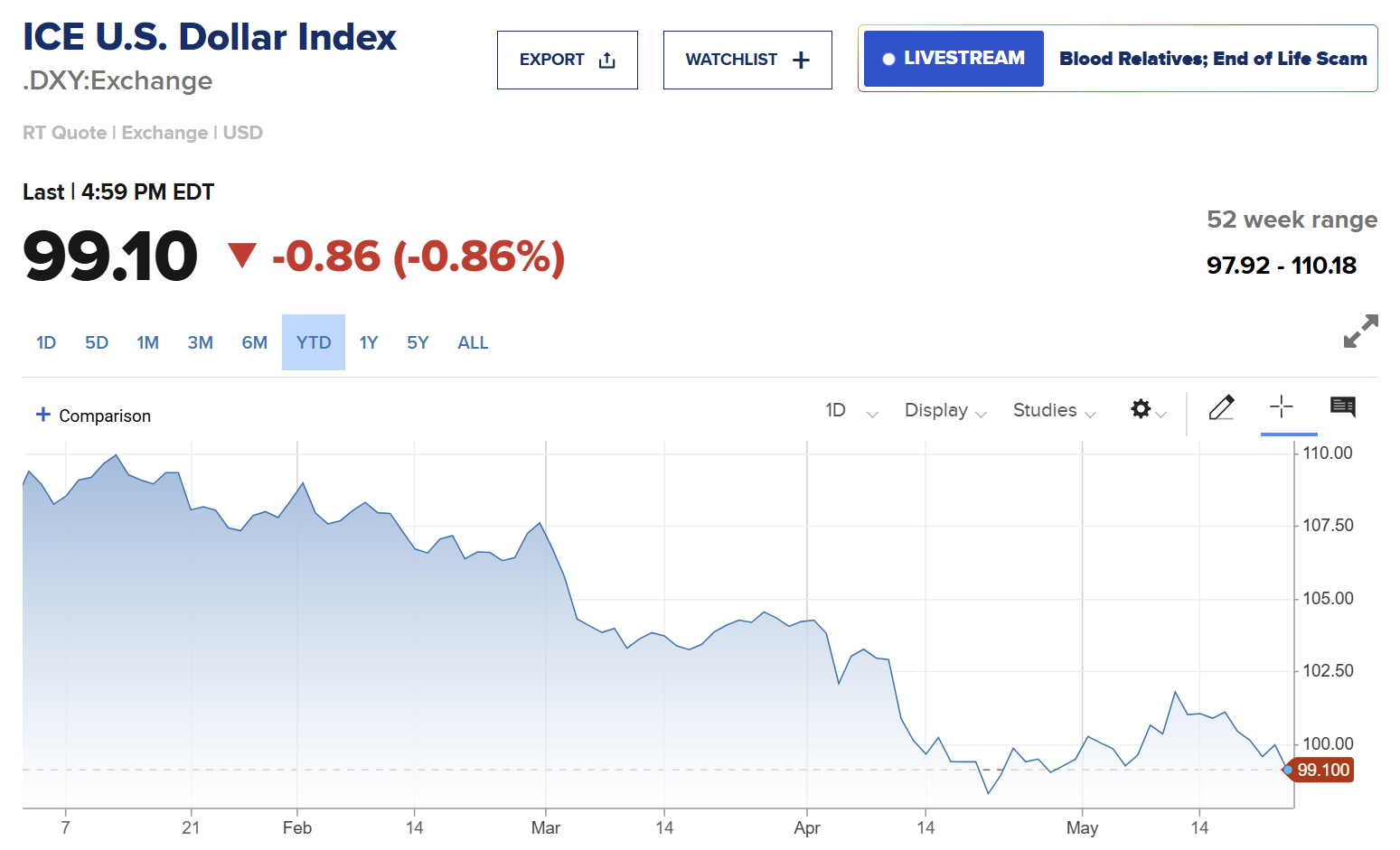 承压的美元资产不仅仅是美债。据彭博社报道,货币期权交易员对美元未来一年走势的看空情绪达到历史顶峰。本周,ICE美元指数再度跌至100整数关口下方,从年内高点已下跌约10%。美国商品期货交易委员会的数据显示,投机者所持美元净空头头寸达173.2亿美元,接近2023年7月以来最高水平。