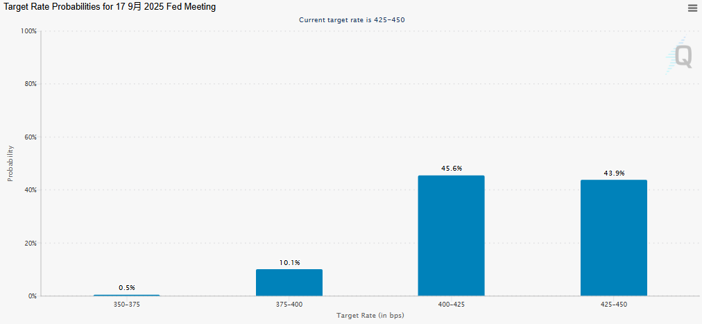 他指出,“如果美国和其他国家在未来几个月内达成贸易协议,这将有助于提供政策清晰度。”根据芝商所的“美联储观察”工具显示,目前市场预计美联储在9月及更早前降息的概率约为56%。