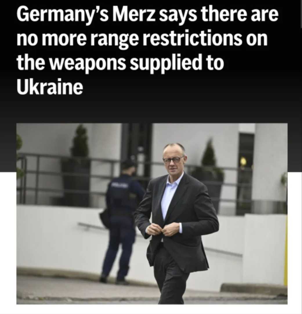 据新华社,德国总理默茨26日宣布,德国及其盟友不再限制援助乌克兰武器的射程,乌克兰可用西方武器打击俄境内军事目标。默茨指出,乌克兰现在可以通过攻击俄境内的军事目标来自卫,无论是英国、法国、德国还是美国提供的武器都不再限制。