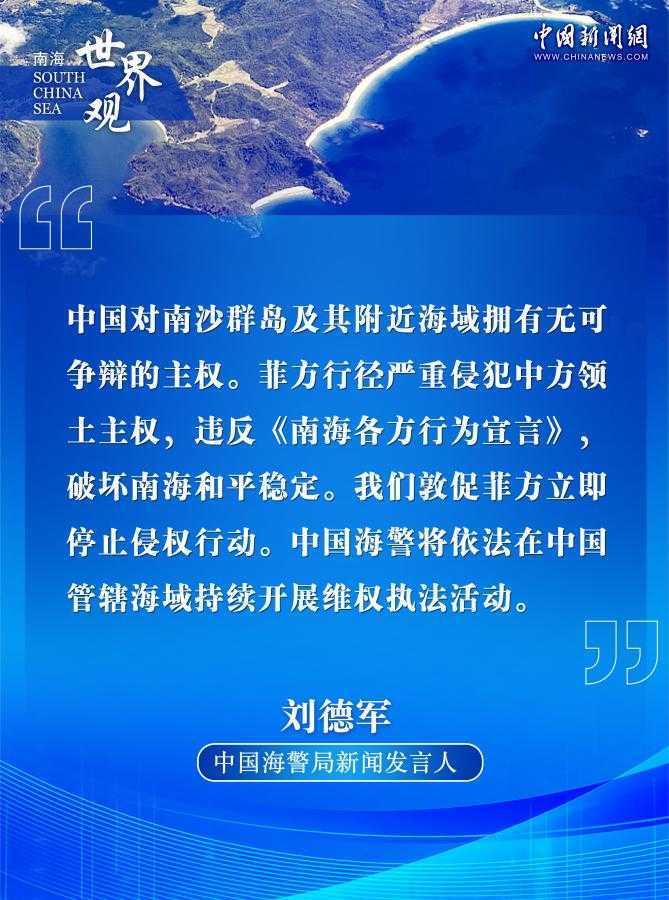 中新网5月27日电 近日,菲律宾公务船无视中国主权,擅自闯入中国南沙渚碧礁、铁线礁附近海域,并在铁线礁进行非法活动。中国海警船迅速响应,依法进行管控和处置。在此过程中,菲3002号公务船采取危险动作,导致与中国海警艇发生擦碰,菲方应承担全部责任。中方再次强调,对南沙群岛及其附近海域拥有无可争辩的主权,并敦促菲方立即停止一切侵权行为。同时,中方将坚定不移地依法在中国管辖海域进行维权执法活动,坚决捍卫国家领土主权,维护南海地区的和平与稳定。