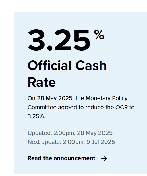 最终,委员会于2025年5月28日以5票赞成对1票反对的结果,将OCR由3.50%下调至3.25%,以应对经济挑战。