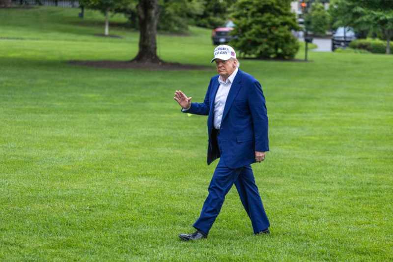 5月25日,美国总统特朗普乘直升机返回首都华盛顿白宫。新华社记者胡友松摄