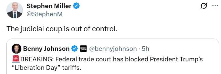 美国国际贸易法院的裁决可被上诉至美国联邦上诉法院,最终可被上诉至美国联邦最高法院。此次裁决被视为特朗普政府遭遇的重大司法挫折之一,相当于全盘否定了特朗普第二任期内关税战的法律基础。