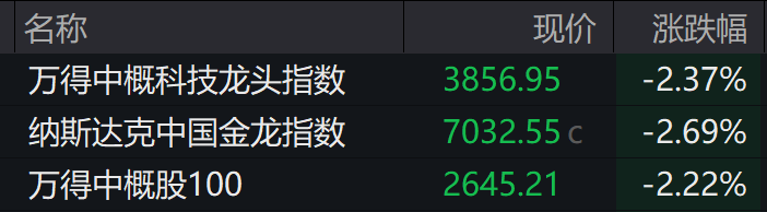 中概股普遍受挫,纳斯达克中国金龙指数下跌2.69%,迅雷、小牛电动等多只股票大幅下跌。