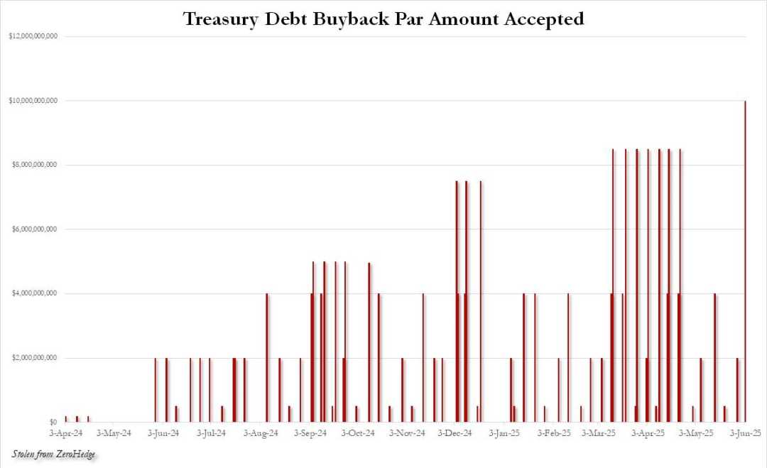 美东时间周二下午2点,美国财政部公布最新国债回购结果,规模达100亿美元,创历史新高。自2024年4月以来,美国财政部几乎每周都进行此类操作。