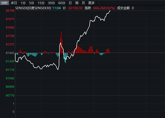 印度央行降息后,股市直线拉升。SENSEX30指数涨0.82%,权重股普遍上涨。此外,一项银行指数创下纪录新高,印度央行下调存款准备金率为银行提供更多资本提振信贷。