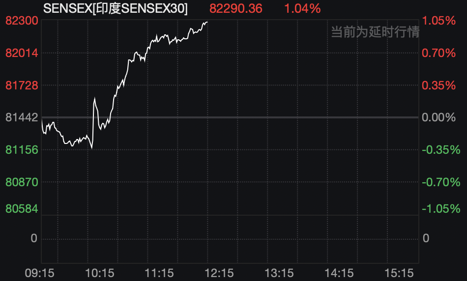 降息后,印度股市大幅拉升,印度SENSEX30指数盘中翻红,涨幅超过1%。