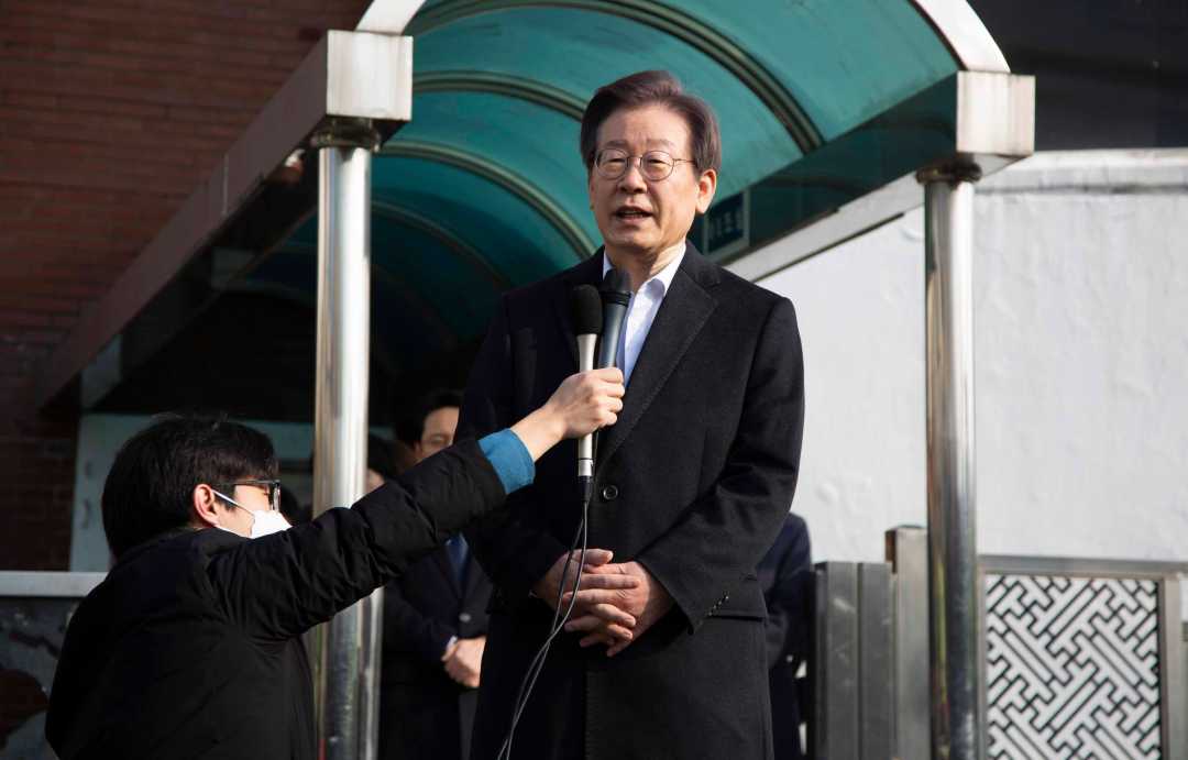2024年1月10日,李在明遇袭后出院发表讲话。新华社发(全休相摄)