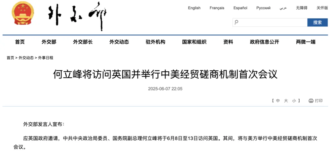 据外交部网站6月7日消息,应英国政府邀请,中共中央政治局委员、国务院副总理何立峰将于6月8日至13日访问英国。在此期间,何立峰副总理将与美方举行中美经贸磋商机制首次会议,这一会议对于中美两国经贸关系的未来发展具有重要意义。
