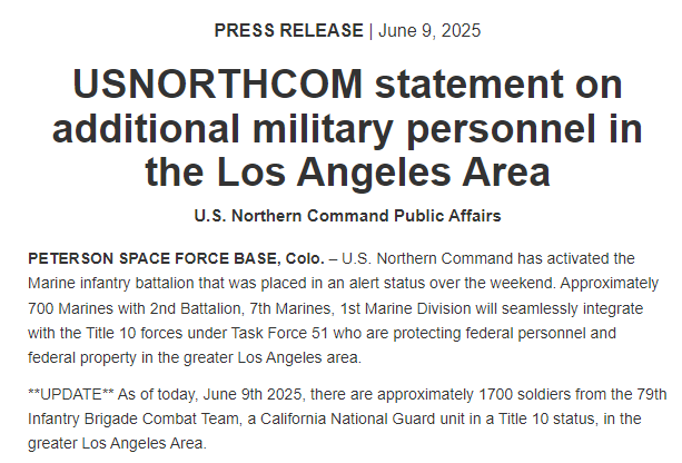 根据北方司令部的声明,截至2025年6月9日,大洛杉矶地区约有1700名来自第79步兵旅的士兵,他们是加州国民警卫队下属部队。这一部署可能对当地经济、特别是与军事相关的产业链带来一定影响。