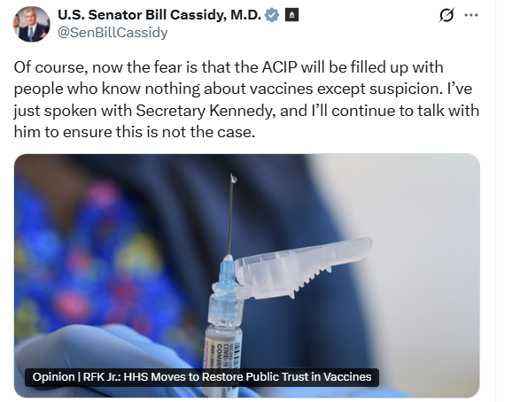 肯尼迪“清空”疾控中心疫苗专家团队的举动招致广泛抨击。路易斯安那州联邦参议员、医生出身的比尔·卡西迪在社交媒体平台上表示担忧,认为新成员可能缺乏疫苗相关知识。