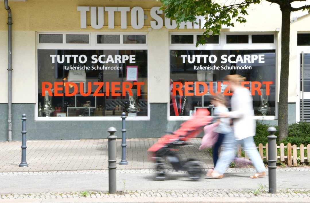 2023年6月28日,行人经过德国柏林一家打折店铺。新华社记者任鹏飞摄