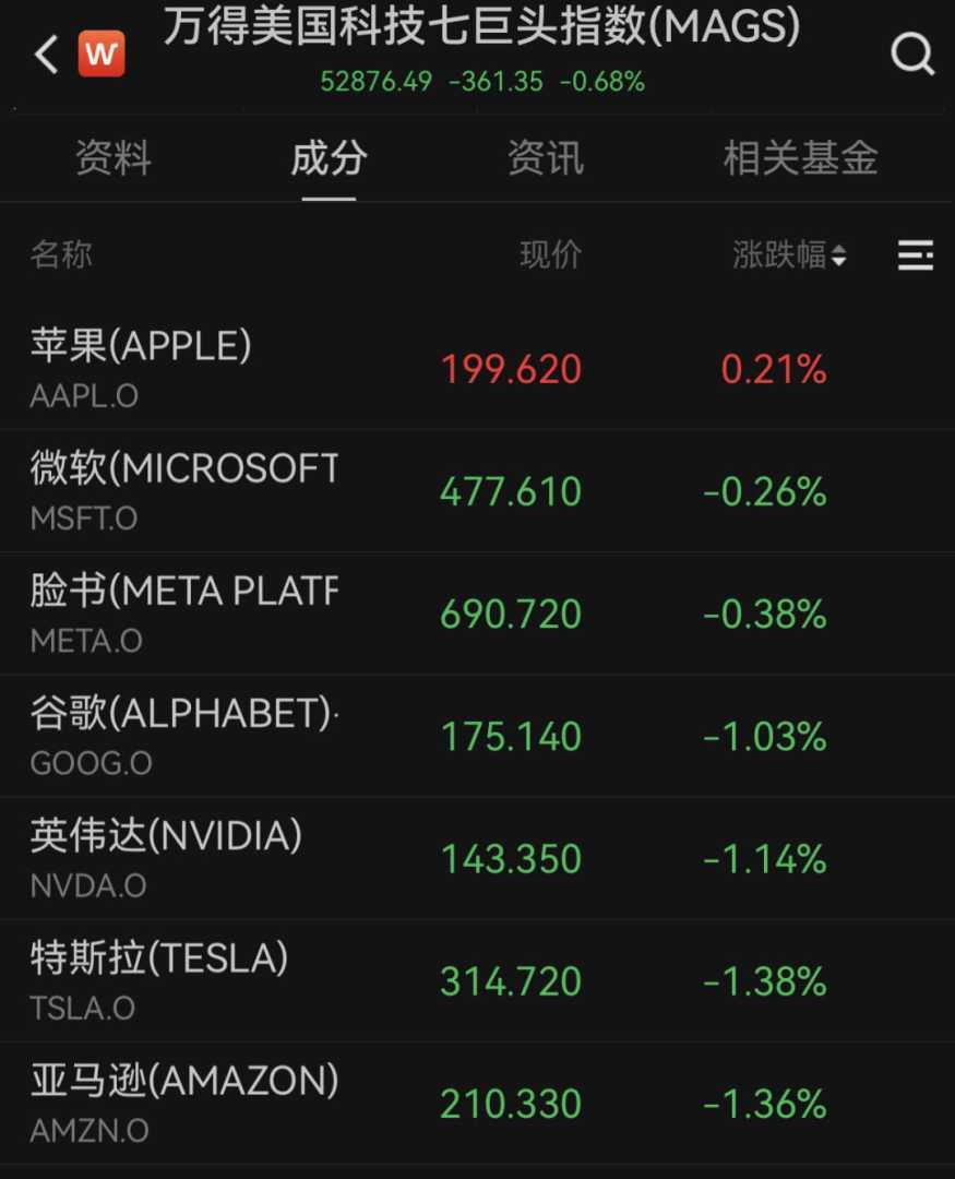 美国大型科技股表现不佳,其中苹果微涨0.21%,但亚马逊、特斯拉、英伟达、谷歌均跌幅超过1%。微软和脸书也分别下跌0.26%和0.38%。与此同时,油气股表现抢眼,斯伦贝谢上涨超过1%,埃克森美孚涨幅更是超过2%。