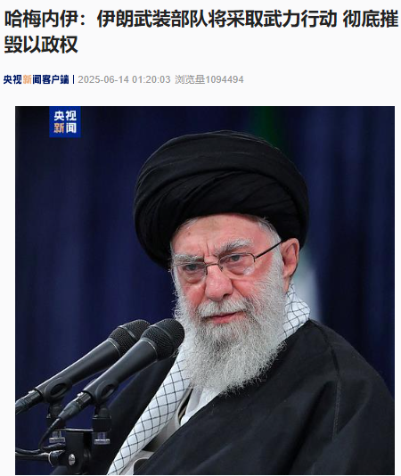 据央视新闻,伊朗最高党首哈梅内伊13日晚间发表声明,称伊朗武装部队将采取武力行动,彻底摧毁以色列政权。