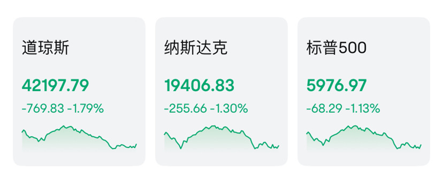 欧美股市集体收跌,美股三大指数均跌超1%。盘面上,大型科技股、芯片股、航空股普遍下跌,而能源股则逆势上涨。欧洲市场方面,德国DAX指数、法国CAC40指数、英国富时100指数也全线下跌。