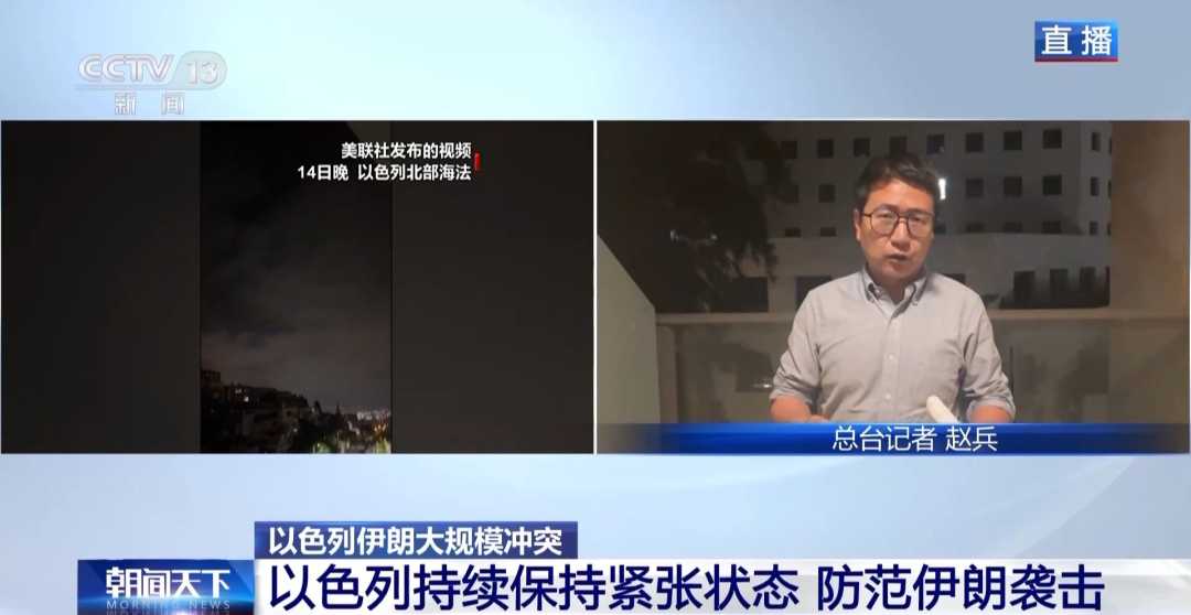 总台记者赵兵:目前以色列国内严阵以待,禁止集会、学校停课,除关键场所外其他工作场所关闭。以色列民航局表示领空关闭,滞留国外的约5万名以色列人可能需等待数周才能返回。以色列已征召预备役人员,在全国各地部署士兵,随时应对伊朗袭击。同时,以军对伊朗首都德黑兰发动空袭,目标包括德黑兰附近燃油库、伊朗国防部大楼。目前,冲突仍在持续。