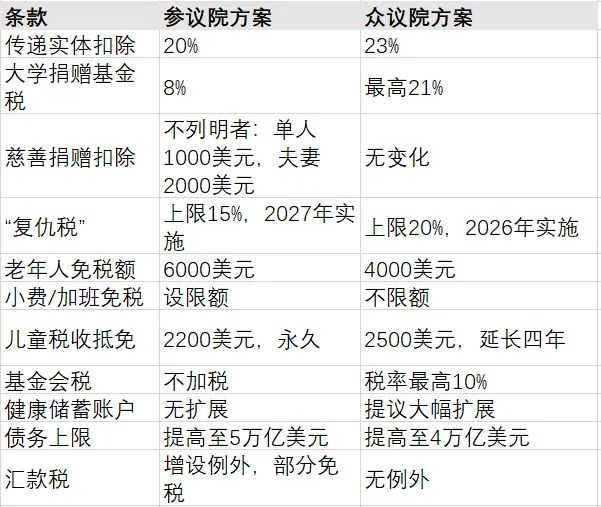 此外,参议院对众议院方案作出多项重大调整,包括传递实体扣除、大学捐赠基金税、慈善捐赠扣除等。