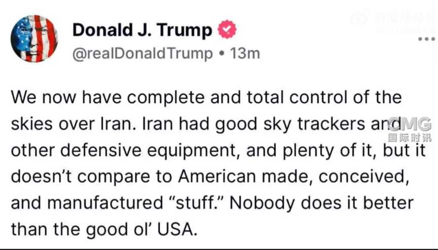特朗普在白宫战情室商议对策,还发文呼吁“无条件投降”,称“完全控制了伊朗领空”。美有线电视新闻网称特朗普有意动用美军事资产空袭伊核设施,但若伊作出让步,仍对外交解决持开放态度。