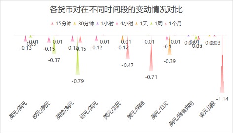 欧元/美元在1周周期也有较大跌幅(-0.37%)