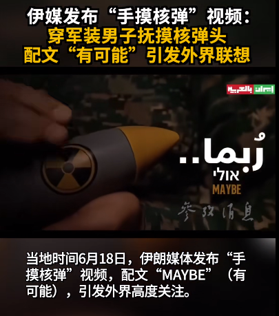 据参考消息,当地时间6月18日,伊朗媒体发布“手摸核弹”视频,配文“MAYBE”(有可能),引发外界高度关注。