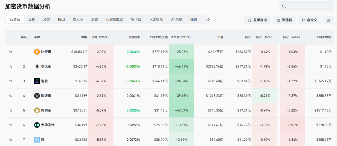 除此之外,狗狗币、SOL、SUI等数字货币均大跌超4%。