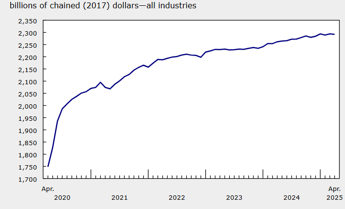 新华财经北京6月27日电 2025年4月,加拿大实际国内生产总值(GDP)环比下降0.1%,结束了3月的增长趋势。其中,商品生产行业整体下滑0.6%,尤其是制造业成为主要拖累因素,环比大幅下降1.9%。耐用消费品和非耐用消费品制造分别下降2.2%和1.6%,反映出关税不确定性对运输设备制造以及食品和石油产业的负面影响。