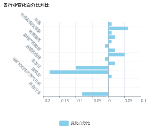 尽管如此,批发贸易行业下滑1.9%,机动车及零部件批发因进出口减少而受到严重打击。资源行业方面,虽然油气提取子行业受天然气和原油产量下降影响,但油气支持活动因钻井活动增加而有所上升。