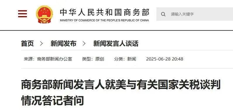 【导读】商务部新闻发言人就美与有关国家关税谈判情况答记者问