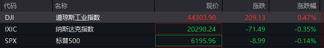 周二,美股主要指数小幅低开,随后走势出现分化,截至发稿,道指翻红涨超0.4%,纳指跌0.35%,标普500指数跌0.14%。