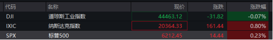 当天,美股三大指数小幅低开,但整体走势平稳,截至发稿,道指微跌,纳指涨0.8%,标普500指数涨0.23%。