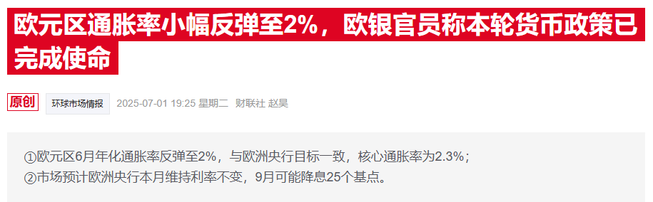 目前,欧元区通胀刚好在2%的中期目标,预计明年将暂时回落至1.6%。若欧元持续升值、叠加美国上调关税,欧洲高层央行官员的担忧只会加剧。