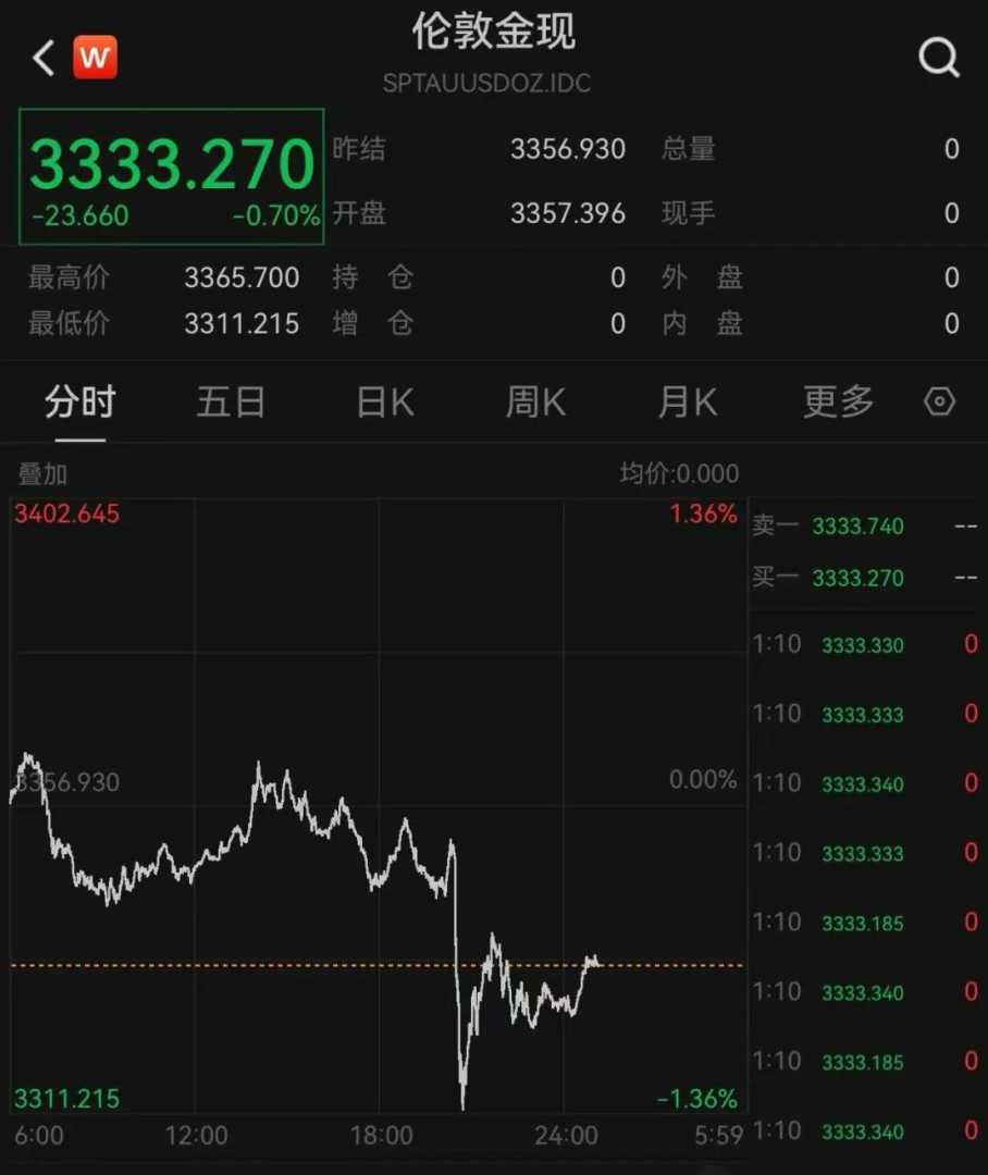 在美上市的中概股公司——脑再生科技再度爆发,盘中一度暴涨超170%,该股年内涨幅达213倍。现货黄金价格一度跌破3320美元/盎司关口,最新报3333.27美元/盎司。