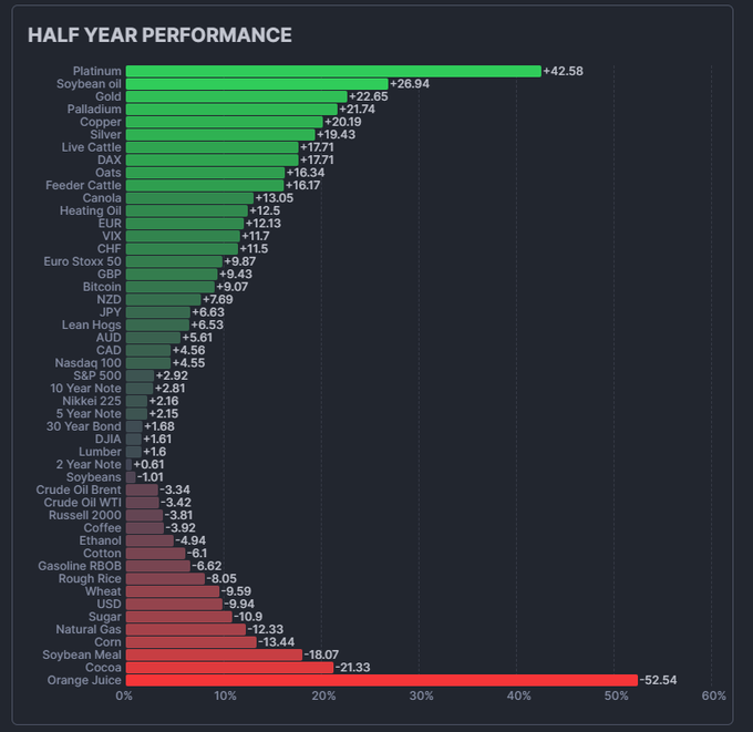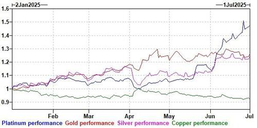 仅在6月份,铂金价格跃升了28%,创下了自1986年以来最强的月度表现。