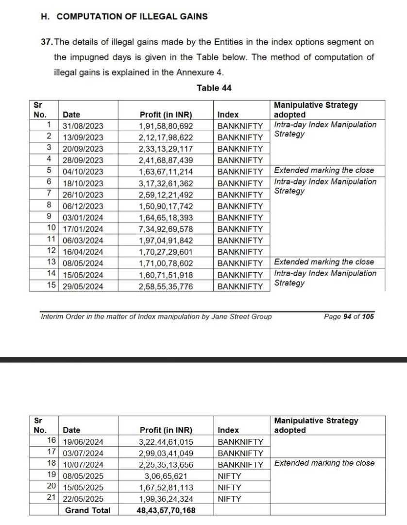 同时这份文件也坐实了之前“Jane Street在印度大赚特赚”的传言。根据SEBI的说法,自2020年12月启动印度业务以来,该公司在2023年1月至2025年3月期间,仅印度交易就获利约43亿美元。